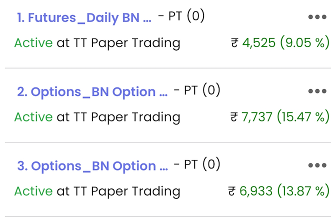 - BN ATM Options 5 min Renko – Total Trades (5) – Profit (+7737)