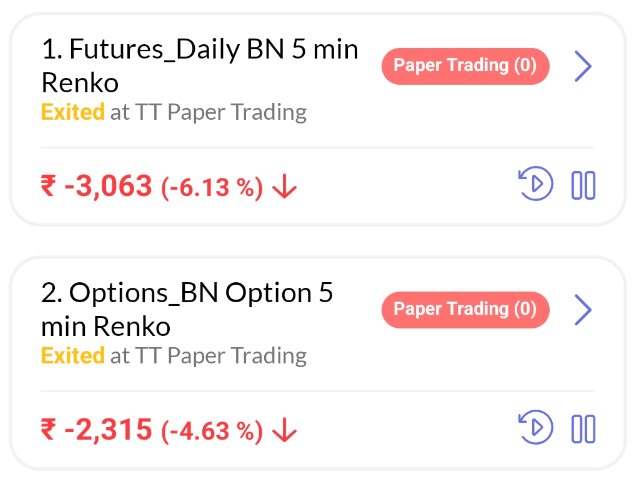 2. BN ATM Options 5 min Renko – Total Trades (10) – Profit/Loss (-2315)