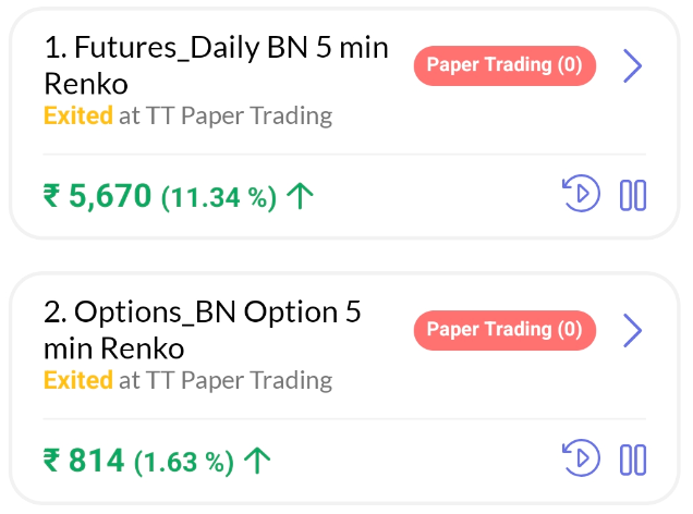 - BN ATM Options 5 min Renko – Total Trades (28) – Profit/Loss (+814)