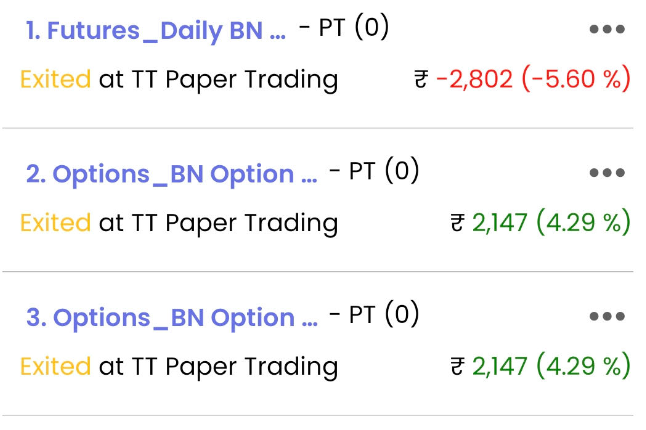 Bank Nifty closed in positive territory today, but the market was choppy around midday. As a result, trend-following strategies struggled to perform well. Our futures strategy ended in a loss, while the options strategies posted marginal gains. As trend followers, it is important to accept and adapt to whatever the market presents.