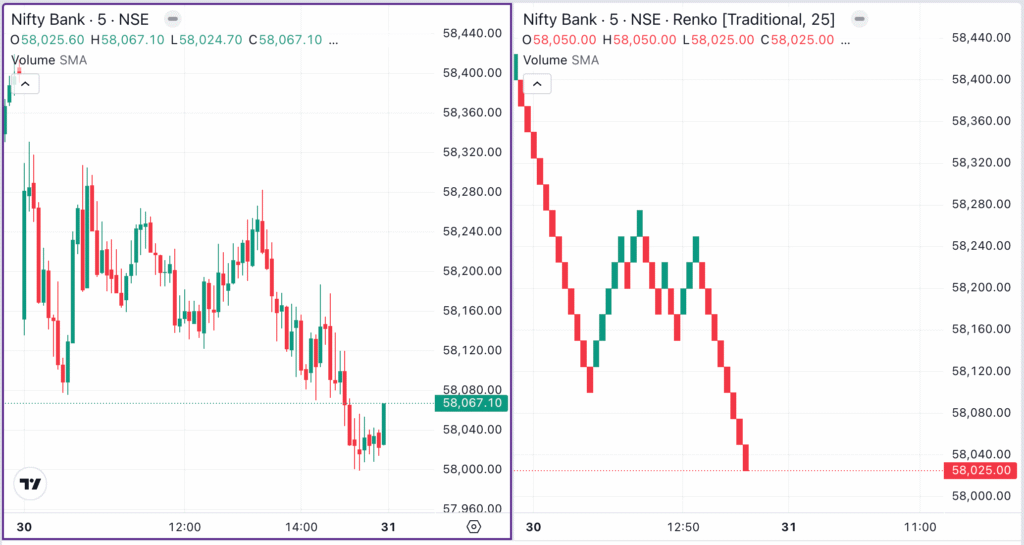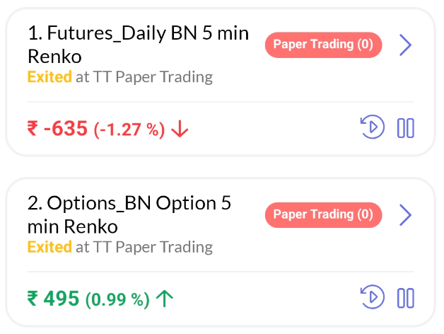 2. BN ATM Options 5 min Renko – Total Trades (24) – Profit/Loss (+495)