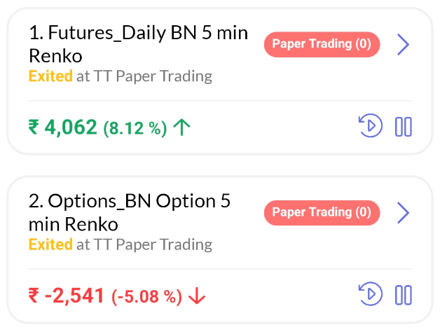 2. BN ATM Options 5 min Renko – Total Trades (27) – Profit/Loss (-2541)