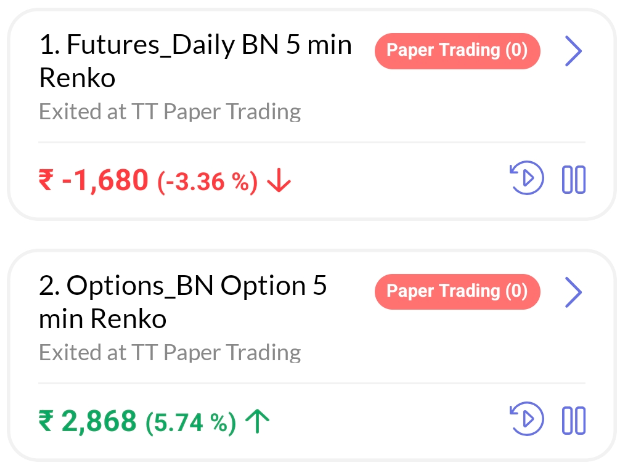 - BN ATM Options 5 min Renko – Total Trades (1) – Profit/Loss (+2868)